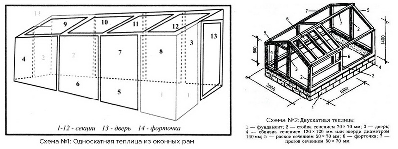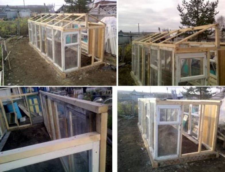 We present to your attention successful greenhouse projects from window frames. Standard greenhouse without a solid foundation and roof. A more modernized version with a foundation basis and a fairly solid roof. The optimal variant of the greenhouse with a solid foundation base and a reliable roof.