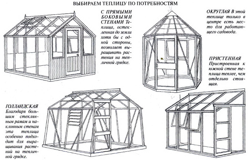 Based on these parameters, further drawings and forms of the greenhouse are formed; therefore, there is no separate and generally recognized list of typical values for such greenhouses. However, some examples are somehow common in our gardens.