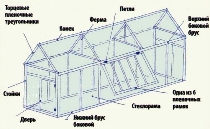 All these factors somehow affect not only the harvest, but also the integrity of the greenhouse structure. Mandatory parameters that should be depicted even in the simplest drawing are the length, height and width of the greenhouse, the dimensions of the reinforcing elements, the size of windows and doors, the depth of laying the foundation and the angle of the roof (if any).In any case, no one keeps you in the strict framework of individual drawings, you can change them, adjusting to your capabilities and capabilities of the site. Just do not forget about the reasonable ratio of all parts, so that in the end you do not get "abracadabra" with a lot of useless windows and with narrow aisles.