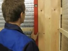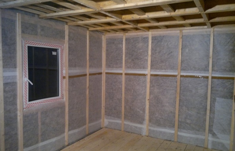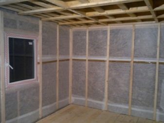 - If necessary, insulate the room on top of the crate is placed insulating material (mineral wool, polystyrene foam). For those rooms where prevailing high humidity, you should not only warm the walls, but also make waterproofing. For these purposes, you can use plastic wrap, which must be nailed to the crate with a construction stapler. Insulating building material is glued to the concrete surface with an adhesive. It is important that the film was laid overlap (10 cm), and the joints are taped, thus creating the best waterproofing in the room.