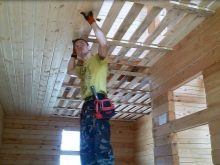 - The finishing board is cut according to the required parameter. For decorating a corner, a special material (wooden corner) is used, through which all inaccuracies and flaws are hidden. Regardless of the chosen method of fastening the finishing material, the last lining is fixed by means of nails, which have small parameters of the cap.