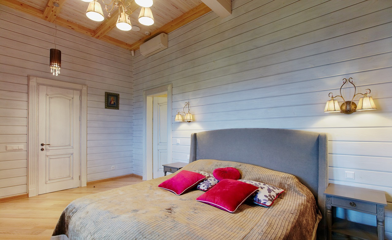 Thanks to the lining of the walls with eurolining in the bedroom creates coziness and comfort. You can focus only on one of the walls, giving originality to the whole style. The natural color of finishing materials is an excellent background for paintings and galleries. If you decide to carry out the eurolining, then opt for warm and soothing colors. In this room will look great beige, light blue, turquoise, pink hues.