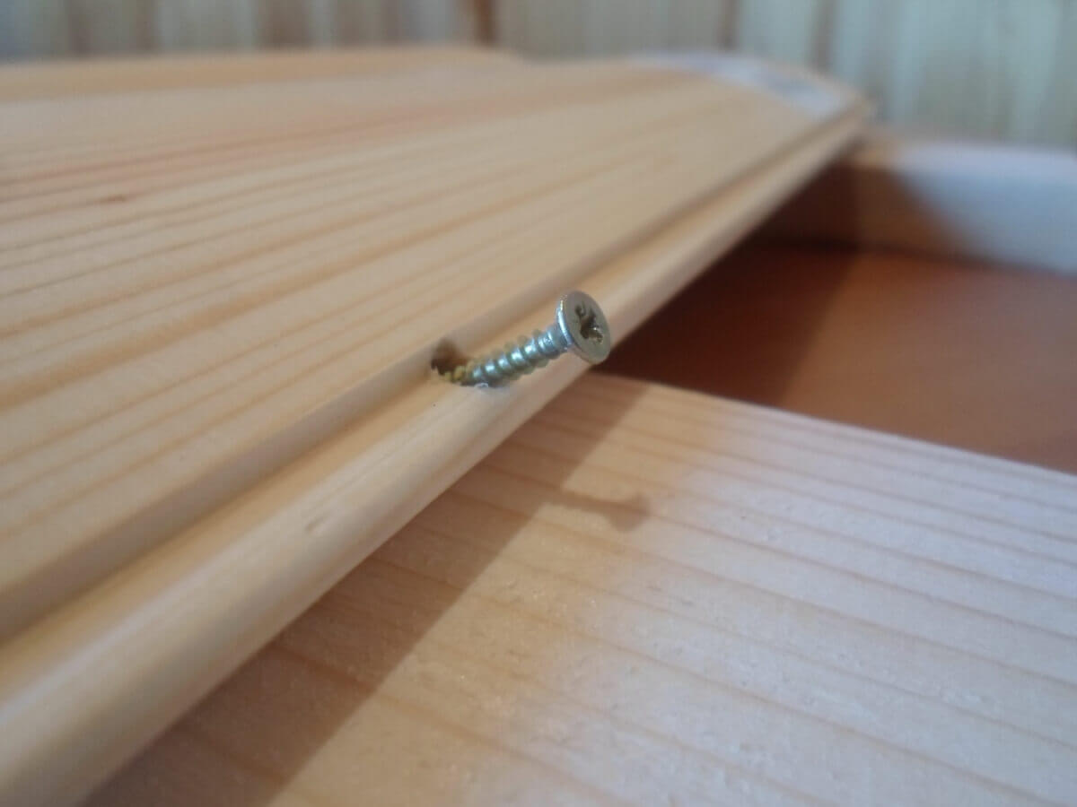 - Screws. In this case, the material is fastened from the side where the spike is located. The size of the locking elements should vary from 1 to 1.5 cm. After twisting the screws, they need to be covered by means of a dowel. At the end of the finish, all protruding elements are cut off, and the surface is carefully ground. To work with screws will need a drill. The disadvantage of using screws is the risk of splitting products under the drill.