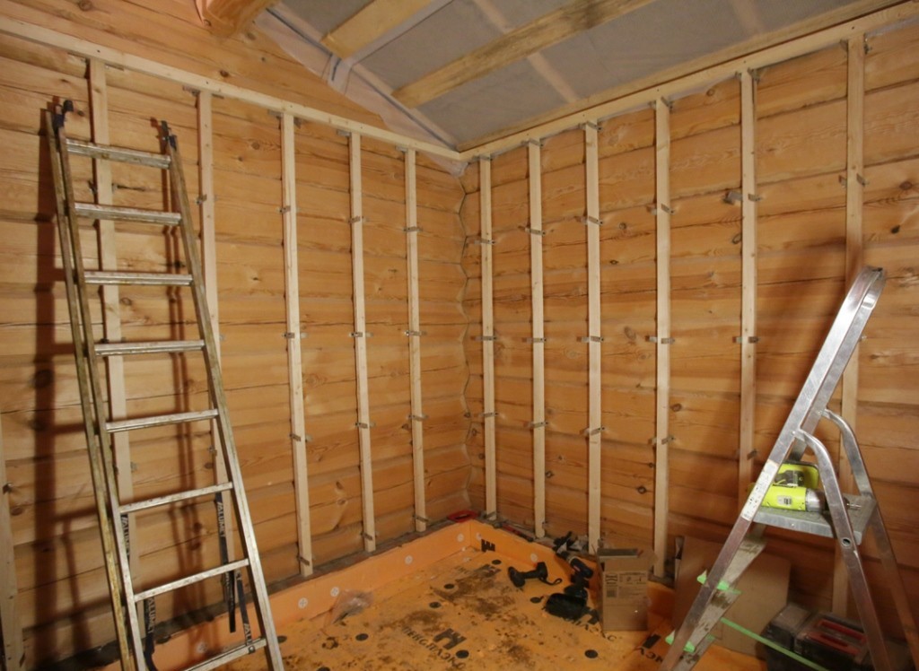 Above you need to nail the final crate, which will be nailed lining. The crate must be placed perpendicular to the future wall paneling.