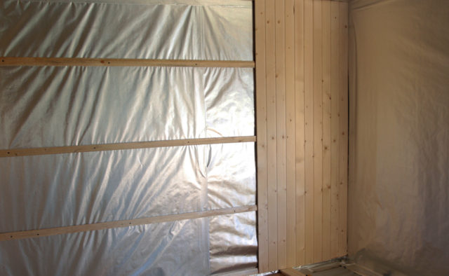 After making the crate, you need to install insulation. Insulation is placed on the waterproofing material. So you need to sheathe the room around the perimeter, and only then engage in insulation. Sheathe better plastic wrap.