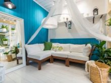 This practice is applicable both in isolation from color delights, and in close conjunction with them. The big role is played not only by a coloring, but also the general stylistic plan.For example, in a country setting, white color and its various shades are most preferable. No less good, he will be in the Scandinavian interior. Then the appropriate colors are selected for walls and ceilings.