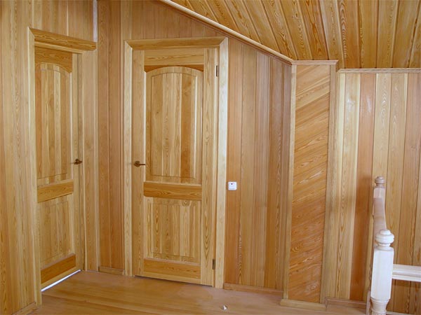 Pine has an average density, quite heavy, immediately recognized by the characteristic reddish-yellow ebb. Gradually, the color becomes somewhat darker. Subject to processing with special mixtures, pine eurolining is extremely resistant to the effects of microscopic fungi, gnawing insects. The glued block can be easily obtained, does not cause technical difficulties coloring and impregnation with stain. Larch varies in tone from light yellow to red-brown.