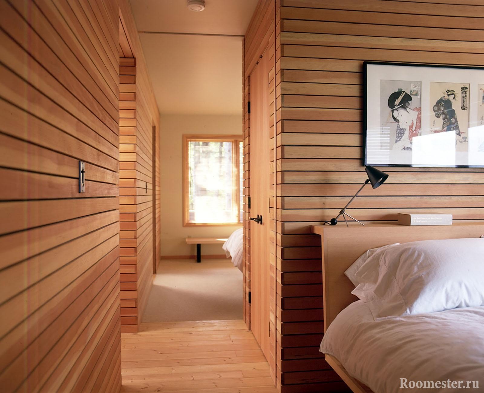 Lining allows you to create and an attractive soft interior in an ecological manner. Kitchens are usually either fully sheathed, or they emit only dining areas with this material. An interesting and not yet beaten move - the packing of panels exclusively at the bottom of the wall. The use of moldings gives good results for the separation of heterogeneous fragments. If there is no understanding in which room the wall panel is most appropriate, you need to focus on the bedroom.