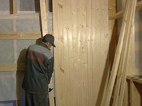 Installation can occur in various ways. After impregnation the wooden slats dry for 48-72 hours, at the same time the tree adapts to the microclimate of the premises. Then they form a crate for the rails, attaching 1-inch pieces of wood at a distance of 500-600 mm from each other. When facing the outer surfaces, it is better to lay a heater in the gap from the surface to the batten. Its choice is made individually.