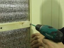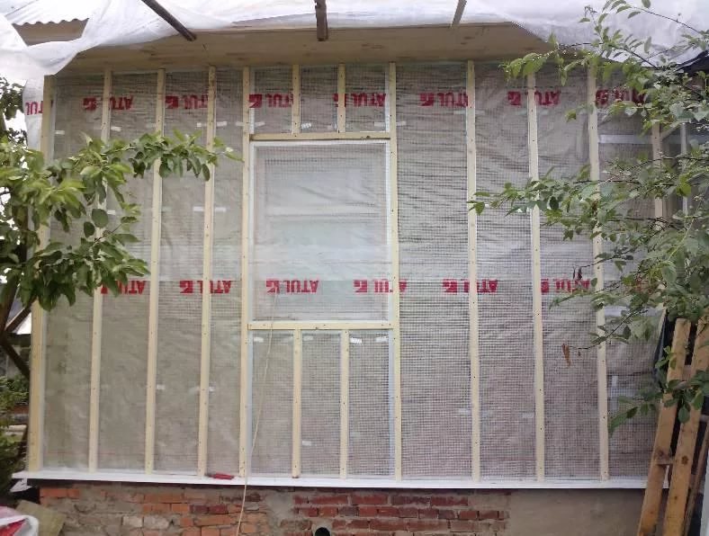Now you can begin to install the second frame. On the bars of the first frame, on top of the waterproofing film, laths 2-3 cm thick and 0.5 mm wide are nailed. To prevent rodents and other insects from entering the lower region of the structure, it is necessary to close it with a metal grid.