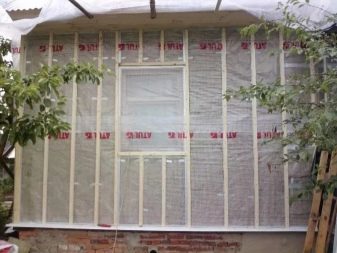 To prevent the ingress of moisture into the room, you must install a waterproofing layer. For this purpose, you can apply a plastic film.Fixing of the film is carried out with the help of construction brackets to the bars.