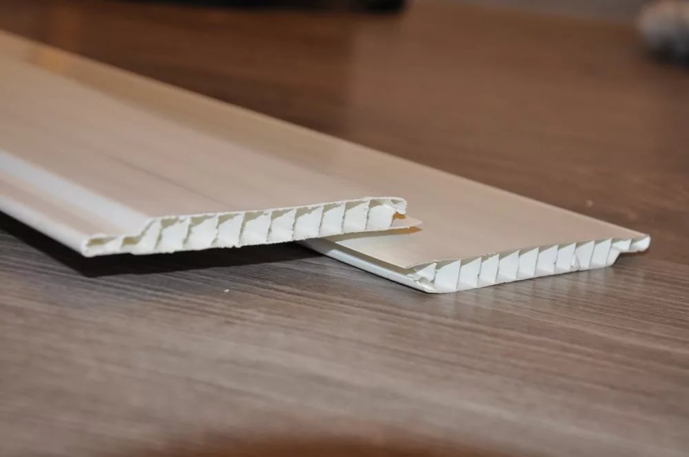 Lining of plastic is made of rigid polyvinyl chloride (PVC) with the addition of coloring and plasticizing special elements under the influence of high temperatures. Inside the building material has voids that give the product thermal and sound insulation qualities. Specialized grooves provide a lightweight installation of finishing, thereby reducing the time of construction work and minimizes financial costs.
