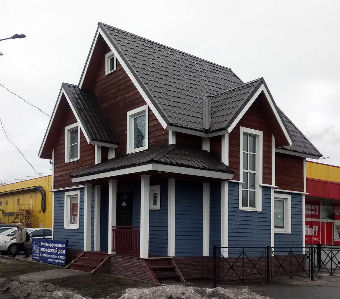 - American. This option is the most popular type of plastic lining due to the installation features, because the panels located provide excellent protection of the facade of the building from high temperatures and moisture penetration into the room.Outside, this variation of the wall paneling resembles overlapping boards.
