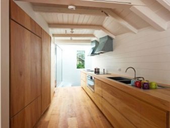 In the interiors of residential houses, wood is one of the favorite finishing materials because of its coziness. And for many rooms it is excellent in terms of operation and design (baths, summer kitchens, interiors in eco, ethno, country, etc.) styles.