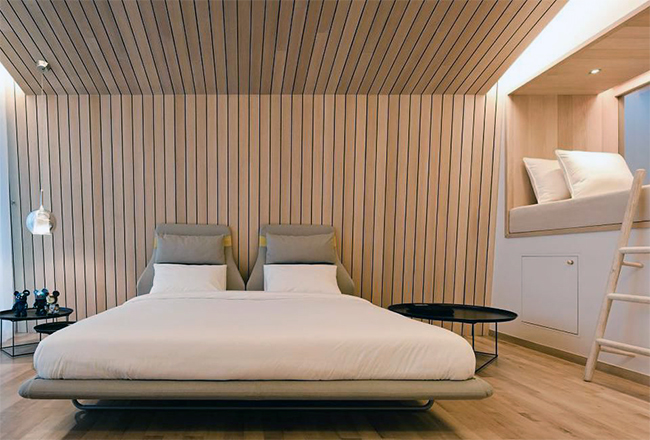 The natural beauty of wood can emphasize toning. Designers often use lining slats to create bold solutions.