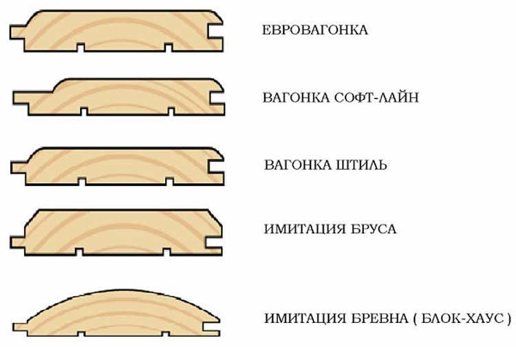 - By profile. There are several types of profiles: normal, Euro lining, American, block house, lining under the frame, under the beam, "calm".
