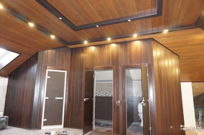 - Cedar is considered an elite material. Such lining is used for internal finishing, its cost is rather big. Natural high tar provides natural protection against pests, decay, and also has a beneficial effect on human health. The smell of needles will dwell in such a room for quite a long time.