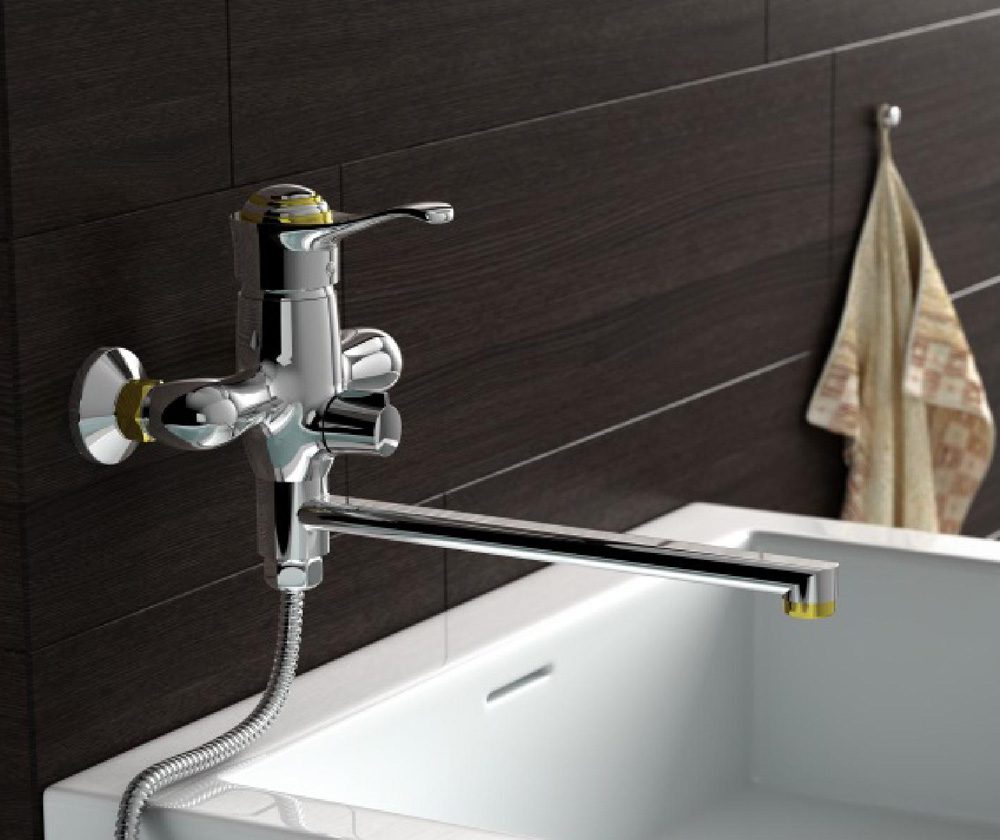 - in small rooms, washbasins are often mounted next to the bathrooms; if the distance allows, you can install one mixer with a practical swivel spout;