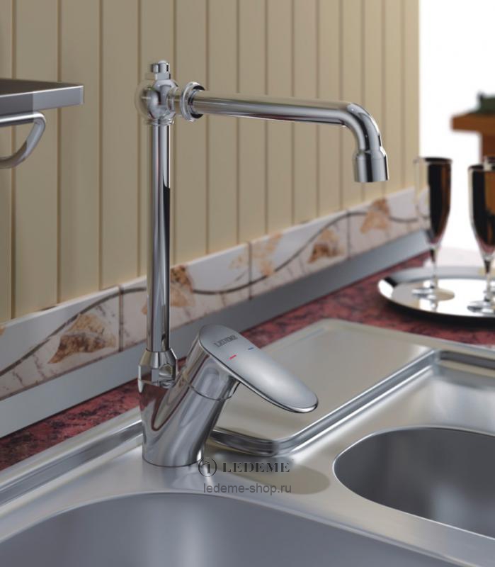 Kitchen-mounted models must meet specific requirements. During their development, increased load is taken into account when compared with products for bathrooms. Representatives of the Ledeme brand offer customers a range of mixers that are durable and comfortable to use. Each kitchen faucet is equipped with an aerator, thereby minimizing the amount of spray when washing food or dishes. Kitchen models are available in a wide variety of shapes and sizes. As well as the mixers differ in the method of controlling the flow of water, the type of placement and the material of the body.