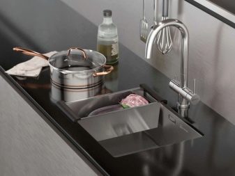 The model range of the Japanese manufacturer Omoikiri includes faucets for the bathroom and kitchen with two-lever, single lever or valve handles, depending on the preferences of the client. Plumbing products can be purchased in a set or separately.But also the range includes additional accessories that will greatly simplify the life of many housewives.