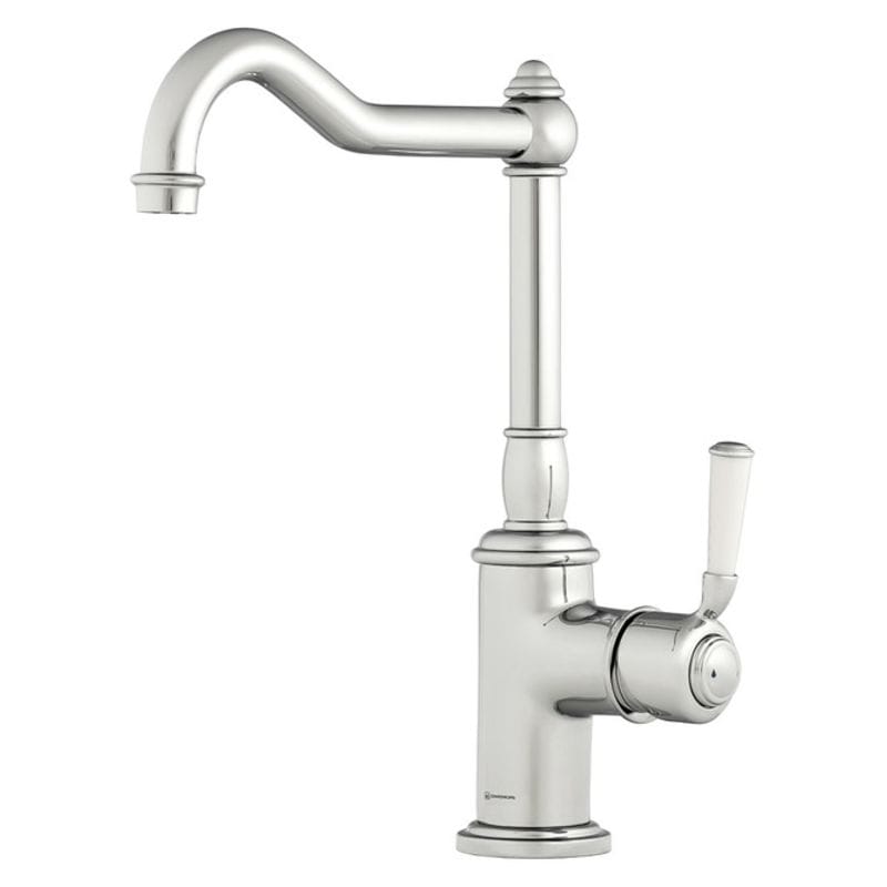 An ultramodern model that draws attention to itself through a flexible crane. It is easy to turn it in any direction to thoroughly wash the necessary thing. It is noteworthy that the concept of this mixer was developed by a Russian student of the Academy of Art and Industry named after A.L.Stieglitz. This model is most popular for the kitchen. Spout height - 200 mm. The body is made of brass, mount of metal. Handle one lever.