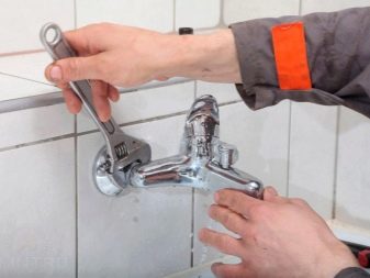 The main stage of the installation of a new crane begins with a revision of the water supply system for the absence of water in it. If it was not possible to completely shut off the water supply, it is necessary to contact the local housing office to shut it off throughout the riser. In addition, you can try to carry out this operation by blocking the tap water from the neighbors who are below. You can change or install the faucet placed on the wall, you can unscrew the captive nuts, fastening it to the water supply and placed on the pipes of hot and cold water.To this end, it is necessary to rotate the nuts counterclockwise with an adjustable wrench or a wrench. Usually, the existing mount is easily removed if it does not show signs of corrosion.