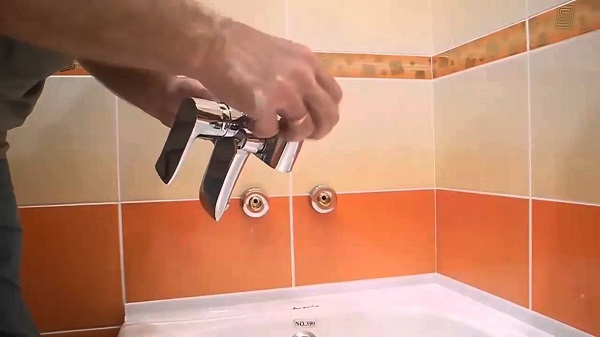 - Put in place the mixers of a different type, using approximately the same algorithm. Completing the installation of conventional and embedded plumbing device, it is necessary to make a control start-up of water, because with its help debris is removed from the pipeline and a leak is detected.