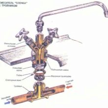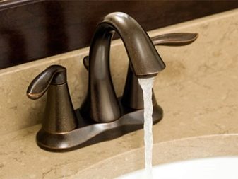 Herringbone mixers are simple in design.The device consists of two cranes connected by a common body. In the middle of the faucet is spout, on the right and left sides - the handle. By turning the handles, the water flow is controlled. Mixers with two valves came up in the XIX century. And so far, these devices have not lost their practicality.