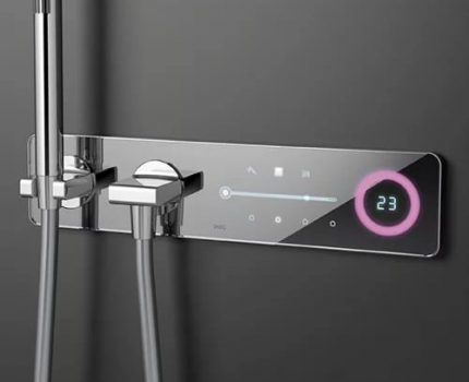 Such mixers can automatically maintain the desired water temperature. A thermoelement is installed inside the devices, which regulates the flow of water of the required temperature by reducing or increasing one of them.