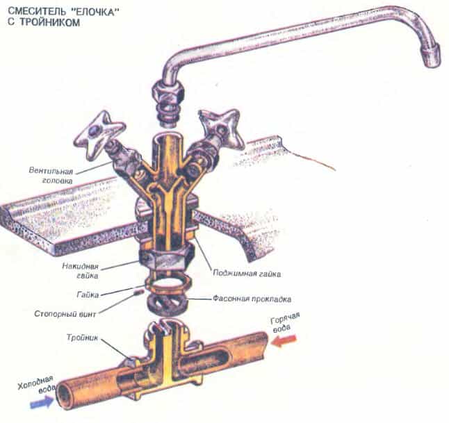 Buying a two-valve mixer "Christmas tree", first determine the size of the sink. The device should not look bulky against the rest of the sanitary equipment. Additional ergonomics has a mixer with the ability to rotate the spout tube. Christmas tree mixers are conventionally divided into two groups, depending on the design features and characteristics of the rotary mechanisms. In cranes of the first group, a sealing gasket is used as a locking device. Previously, it was made of rubber, and now new materials are used with the addition of silicone.Due to this, the reliability and service life of such cranes has increased.