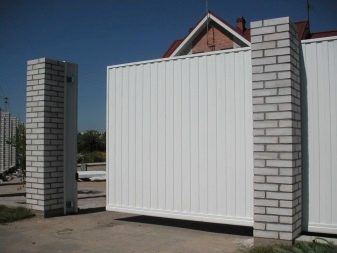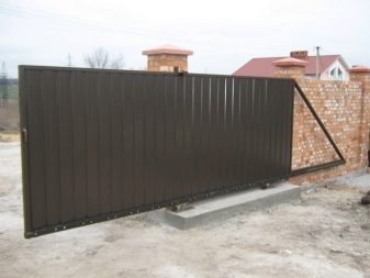 Fixation of the door leaf in the upper part is ensured by the catcher and the beam with carriages. In order that dirt and dust did not get in a design, the side cap is used. The supporting pillars must be assembled from a solid reinforced concrete base, brick or metal pipe.Particular attention is paid to the foundation for the lower rail, otherwise the entire structure collapses under its own weight. There is a high probability of damage to property, including someone else’s, and the risk of injuring people passing by.