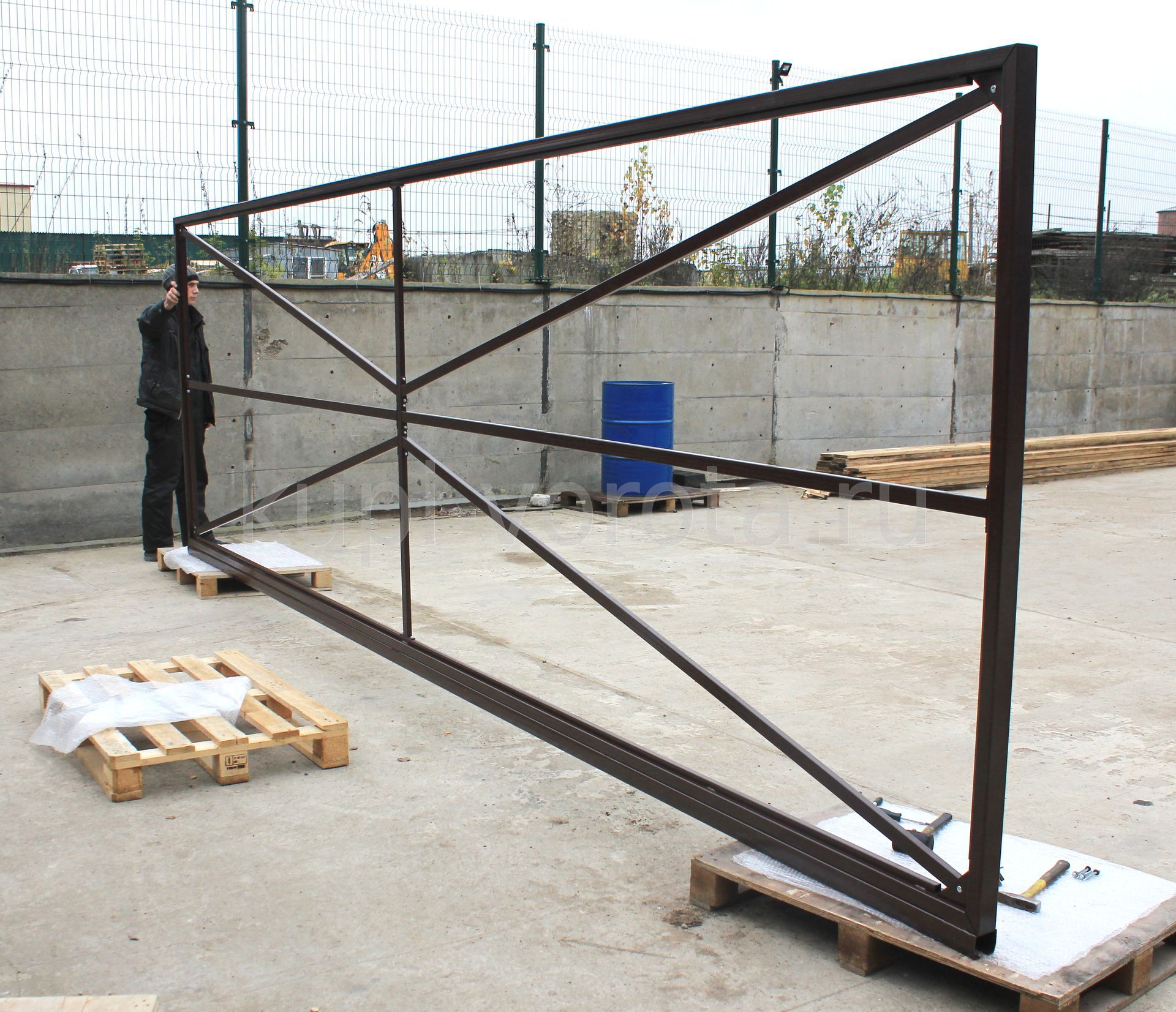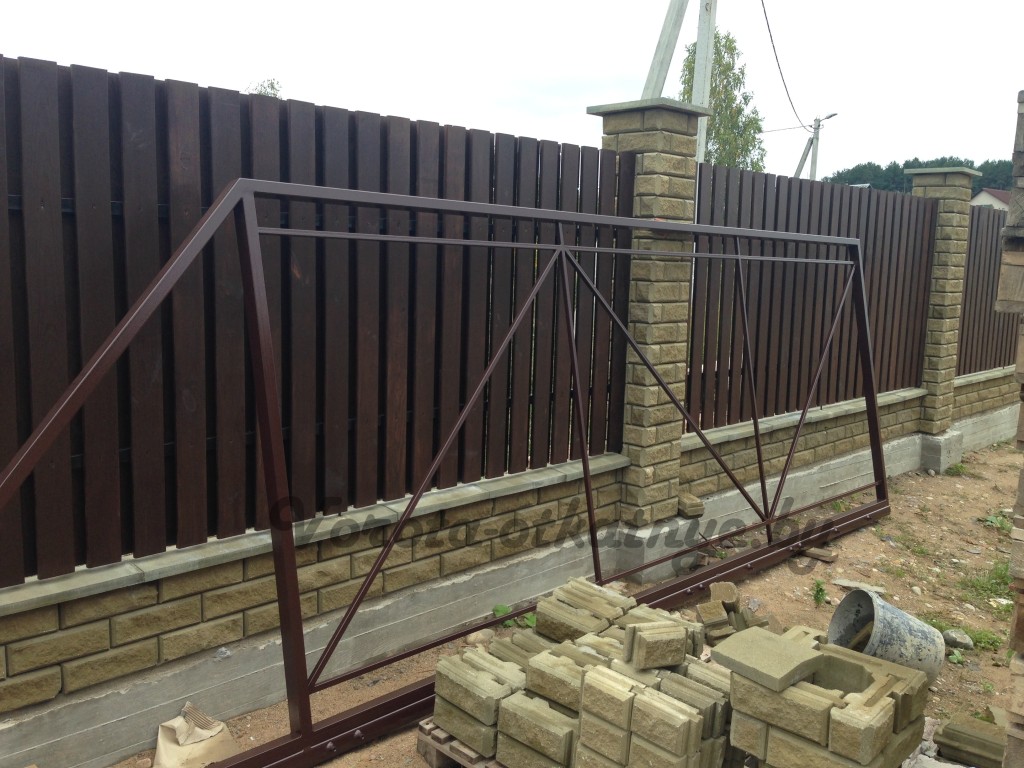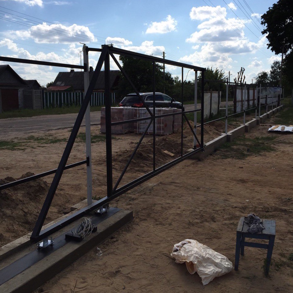 When mounting rail sliding gates to fill the foundation between the span and along the fence on the size of the door leaf. To begin with, a trench is being dug right next to the fence. Its dimensions should be equal to 50 cm in width and 100 cm in depth. The length of the trench will be equal to twice the length of the gate leaf.