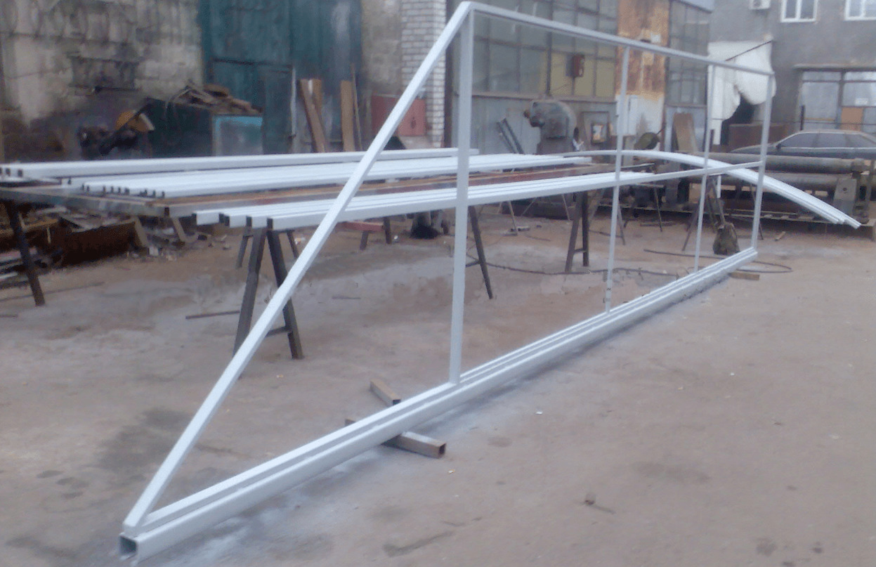 The rollers in this case fit either polymer or metal. The length of the guide beam was 6 m, and its cross section was 60x70 cm. Keep in mind that the thickness of the metal profiles should not be less than 3.5-4 mm. Four-meter metal frame must be mounted with a small margin.