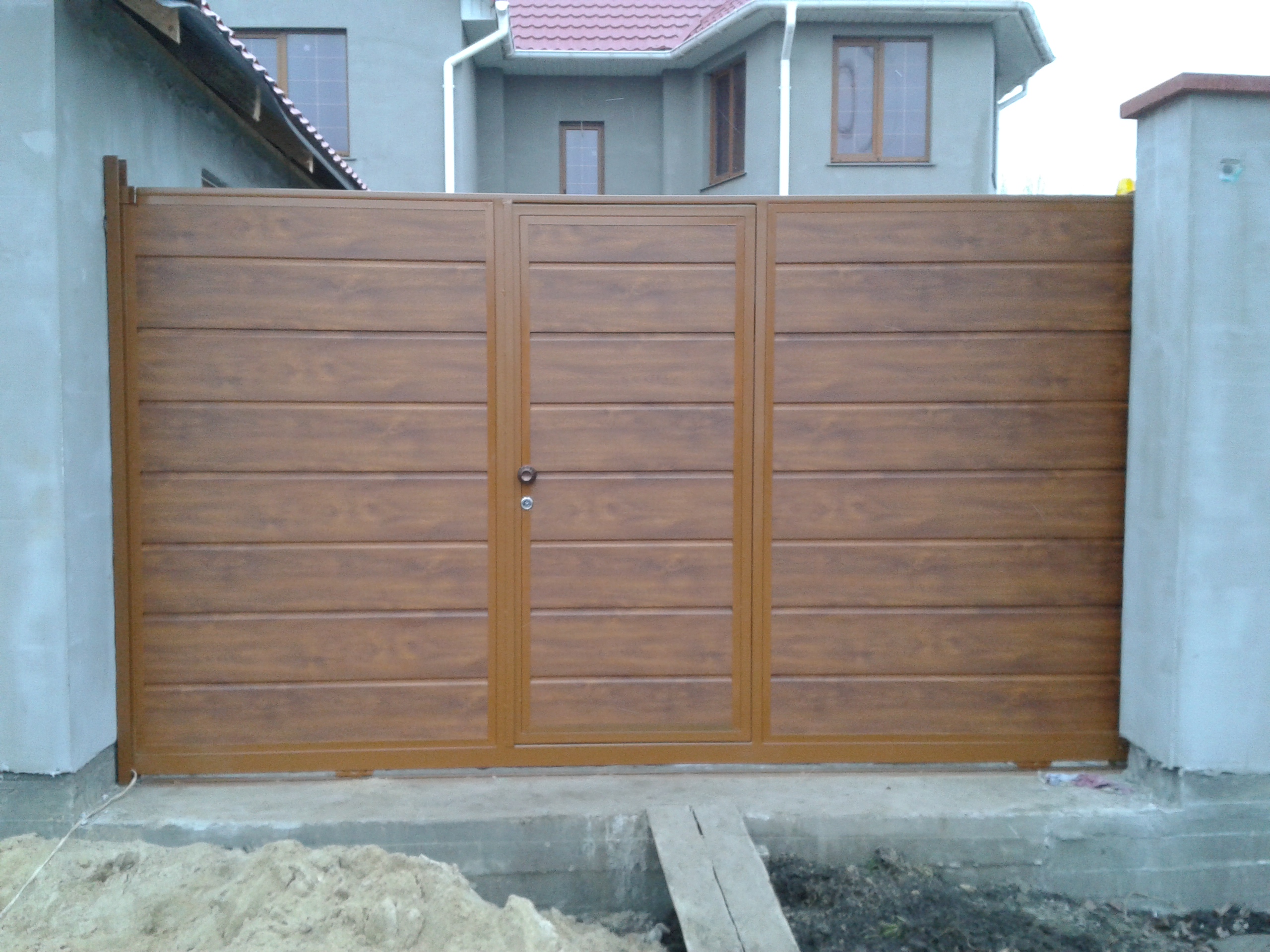 The size of the door leaf can vary significantly. This will depend on the free space along the fence, the dimensions of personal vehicles and the size of the site. In most cases, the gate leaf has dimensions equal to 4400 cm in length and 2000 cm in height.