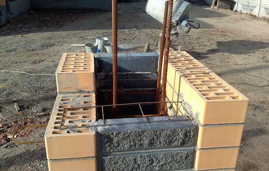 After that, the concrete is poured into the fossa. Remember, you need to monitor the evenness of the pillars.Drying is a long process. At high temperatures, full drying is achieved in a week, and if cemented during the cold season, up to a month.