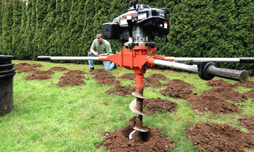 If it is not possible to increase the garden auger or if there are difficulties with a dimple, then the metal support must be hammered with a sledge hammer. Another way out of this situation can be considered yamobur. The drilling machine will make the necessary hole in a short time.