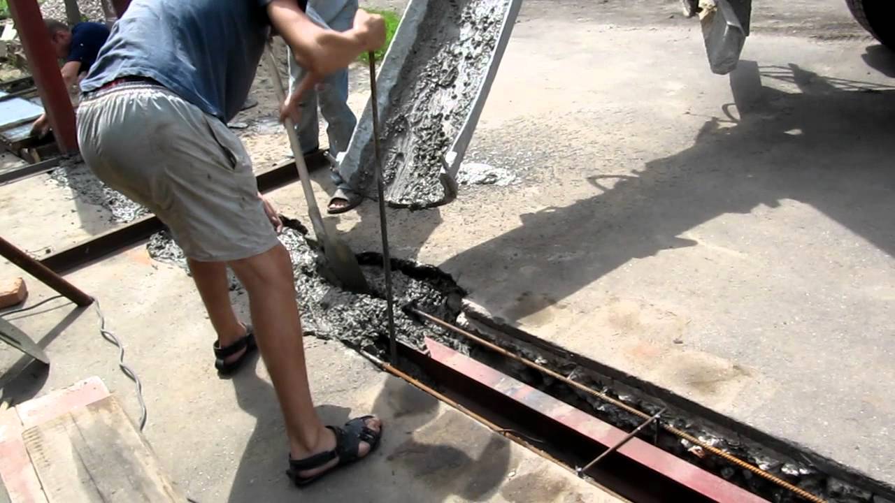 When pouring concrete into the trench, try not to fill the channel. Keep in mind, it is necessary to tie the tie at this moment, thanks to this excess air will be released. The first days the concrete base must be checked and moistened from time to time.