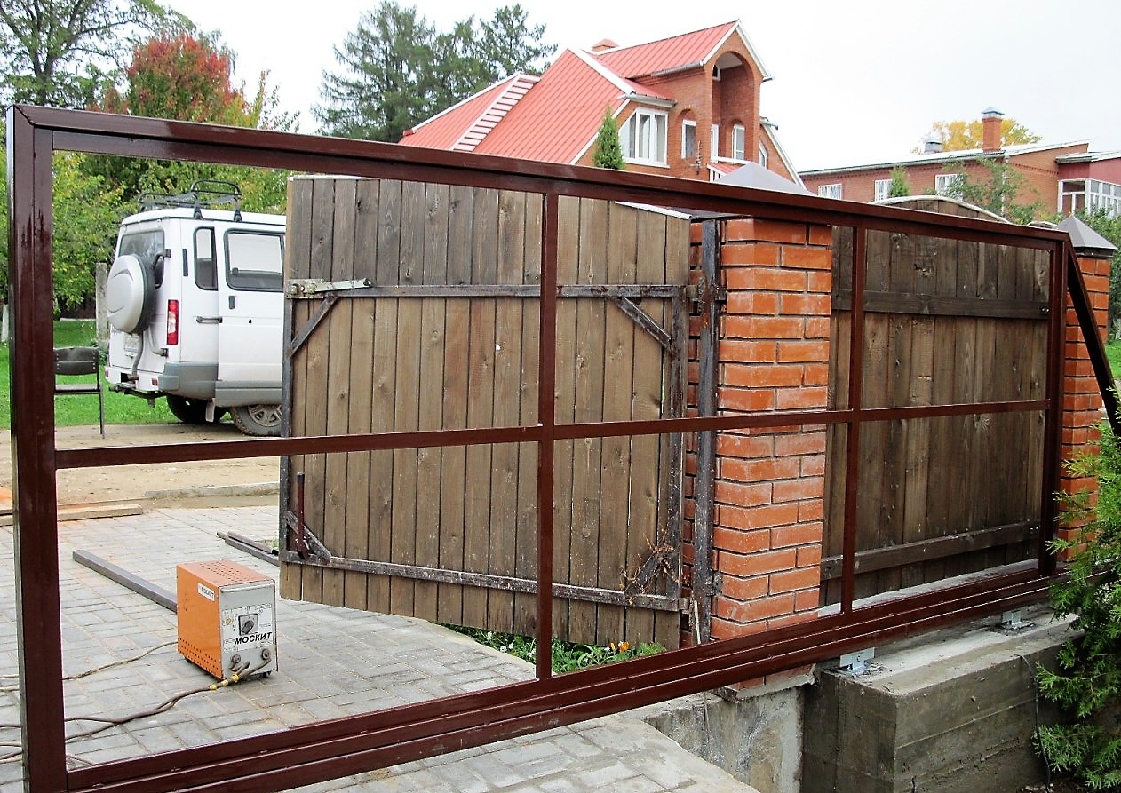 If old structures are to be dismantled before installing sliding gates, close attention should be paid to the support poles used previously. They can be made of metal profiles, bricks with mortgages or of reinforced concrete. remember, that deviation of supports is unacceptable, - they must stand strictly vertically, otherwise the gate leaf will touch the foundation. If the pillars have squinted, it only says one thing: they are incorrectly fixed in the ground.