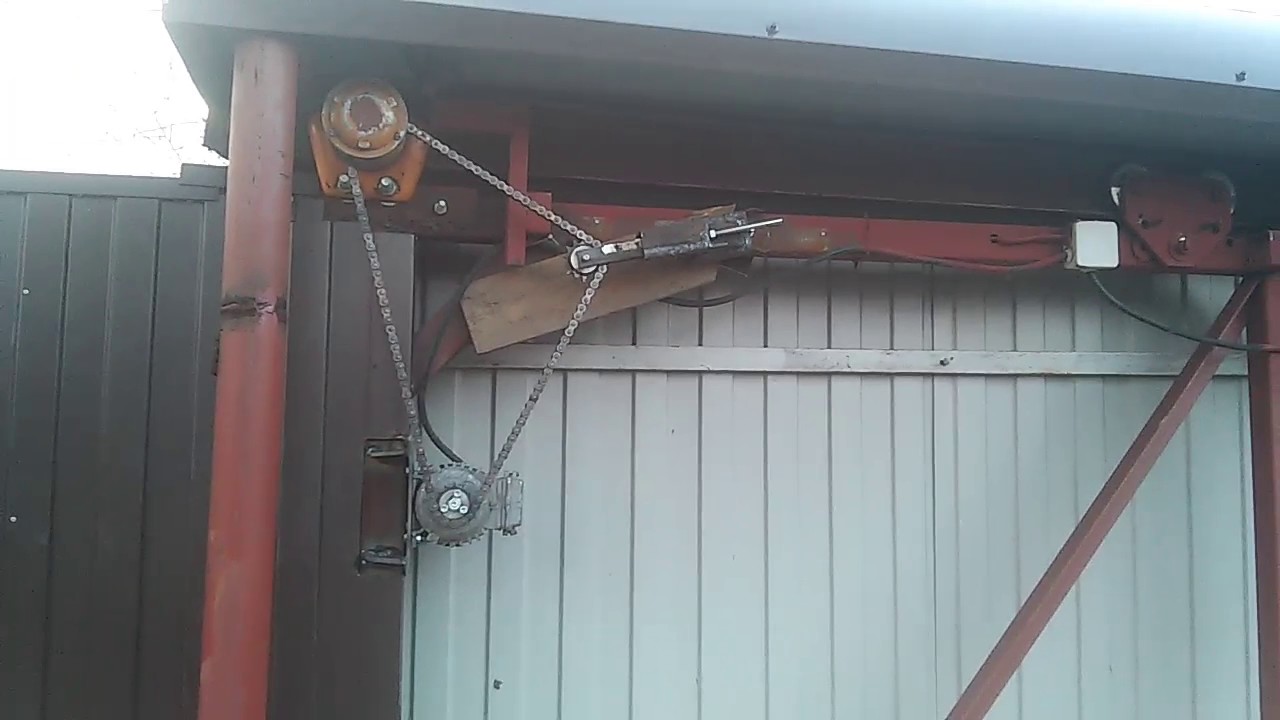 When automatic equipment is made from improvised means, a bicycle star is attached to the gear shaft. If such a detail is not at hand, an asterisk from the motorcycle will do. Subsequently, the corresponding circuit is installed on this element.Fasten it over the entire portal sash strictly in the horizontal plane. When the asterisk rotates to one of the sides, the gate either opens or closes.