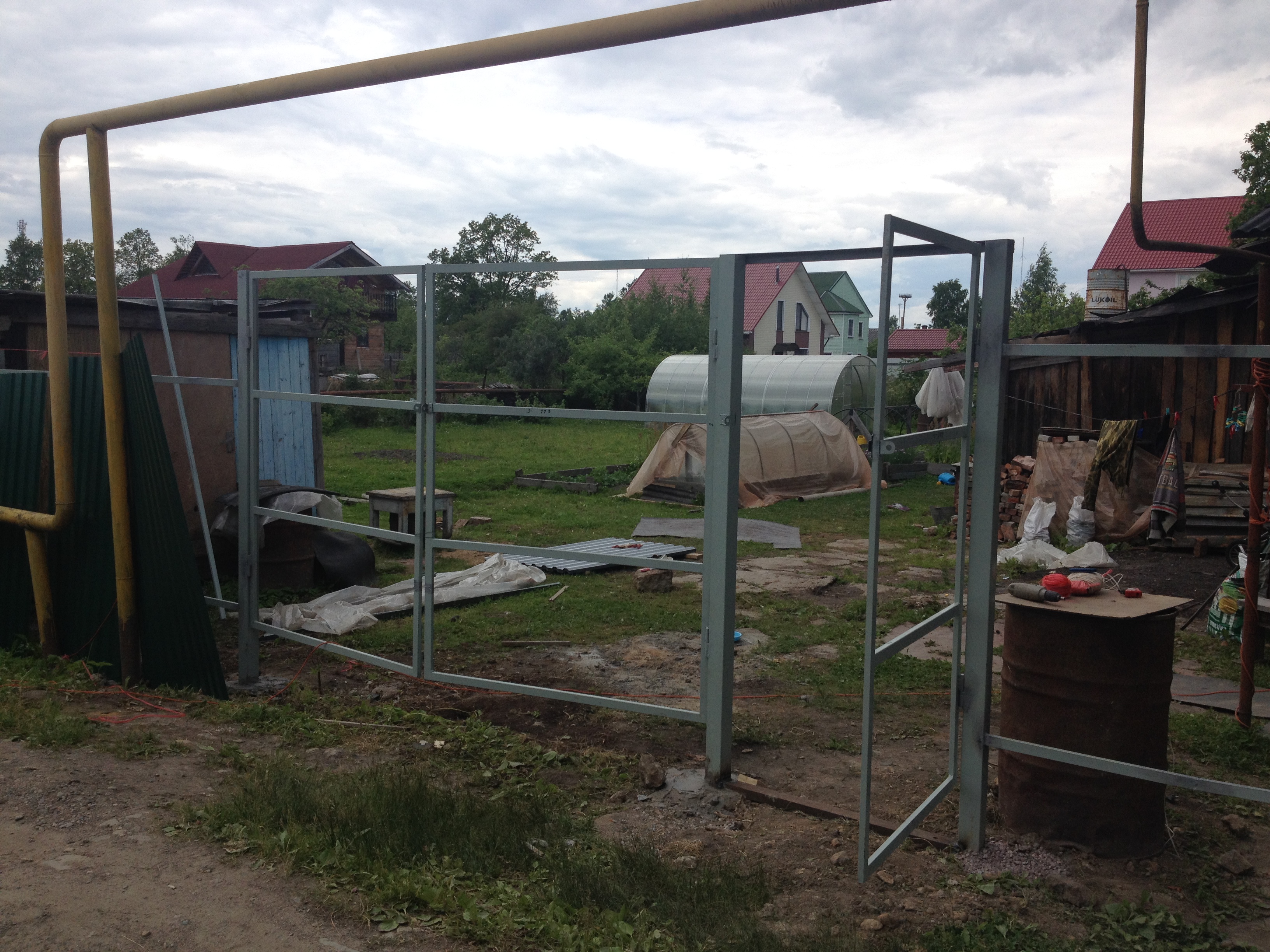 First of all, the metal frame is made, which should completely close the opening. It is made of a shaped pipe of the required cross section, which depends on the weight of the future structure. In order to do this work yourself, you need an angle grinder, which is popularly called "grinder", and a welding machine.