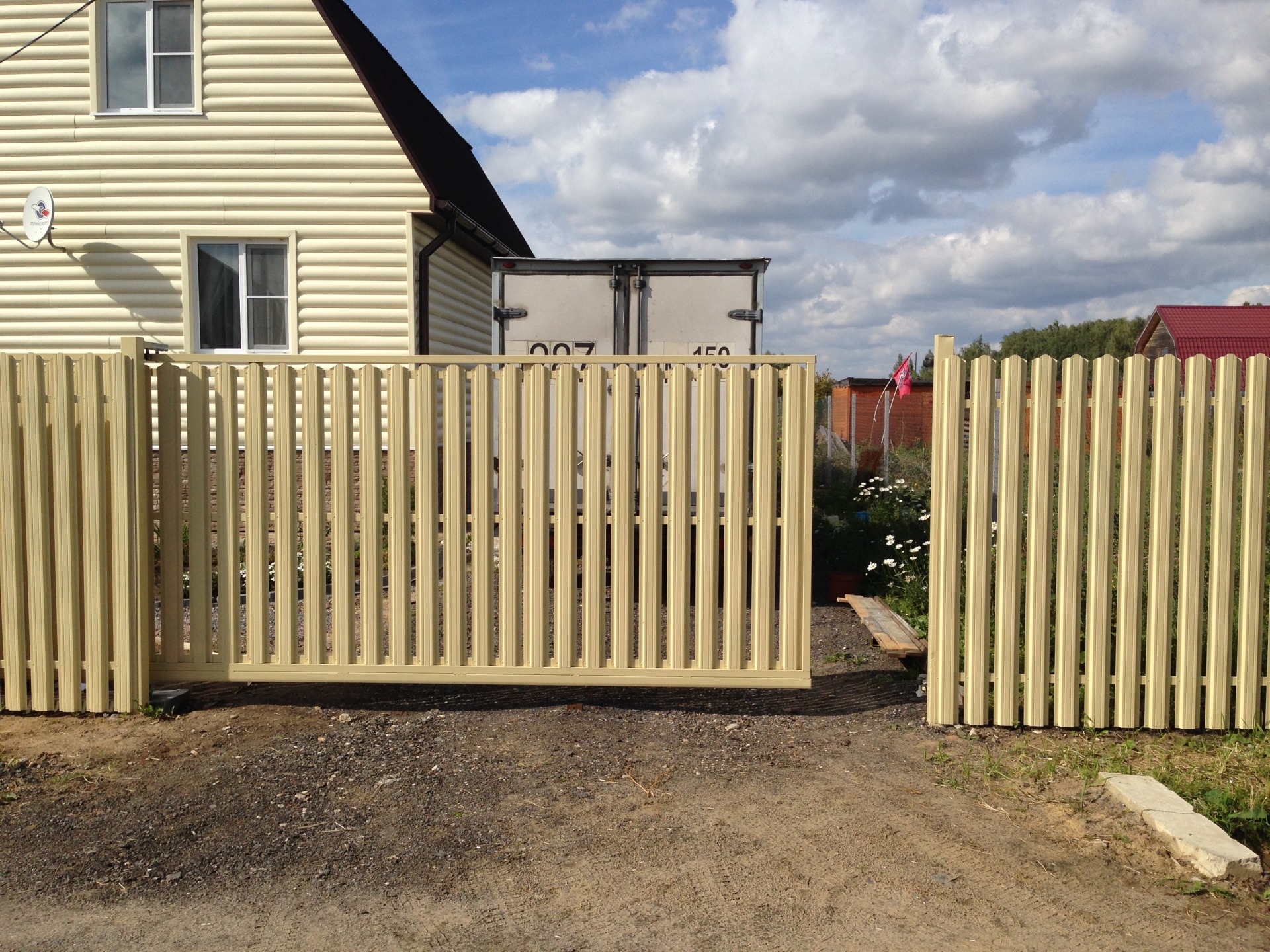 All settings are made according to the instructions from the manufacturer. The design of the sliding gate additionally includes not only an audible alarm, but also an indicator lamp and several photocells.