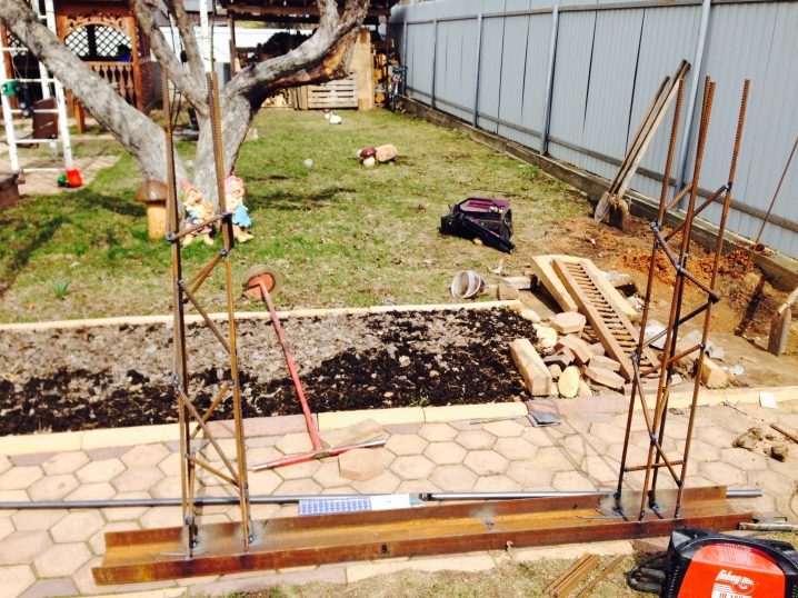 At the bottom of the trench, a small layer of rubble and a sand cushion are stacked; reinforcement is required for good cement fixation.Experts recommend using valve number 10. You can weld it with your own hands, either buy a ready-made reinforcing mesh and tie it with soft wire.