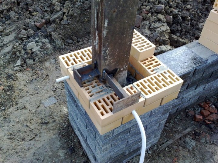 Brick and reinforced concrete pillars must have mortgages, often three pieces are enough. When placed at the top and bottom, it is enough to retreat 200-250 mm, the last mortgage is set at an equidistant distance from the outermost ones. Subsequently, some parts will be attached to them.