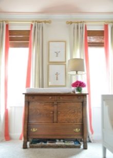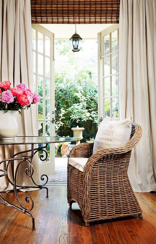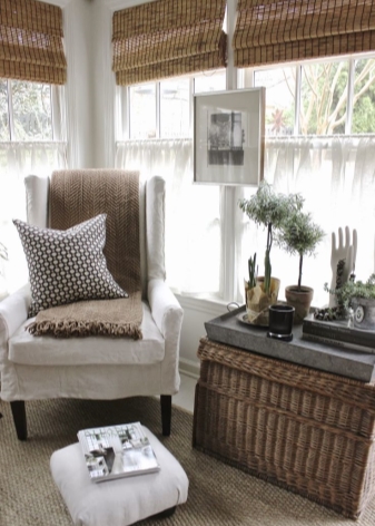 These curtains go well with wooden and wicker furniture, while the color of the curtains should be chosen the same shade or slightly lighter. In this case, it is permissible that the curtains were 2-3 shades lighter.