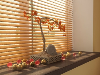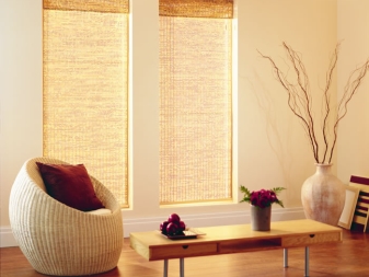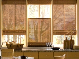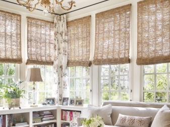 Light bamboo curtains are very popular - they simultaneously shade the sunlight and at the same time allow you to enjoy the view of the street. This technology produces fashionable blinds-pleated, where when you open the blinds, the canvas is wound up on a horizontal shaft.