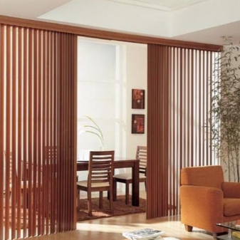 Thus, the designs are made with horizontal and vertical plates, as well as woven cloth - roller blinds (roleta, at which the opening is twisted into a roll) and Roman (are going to folds).
