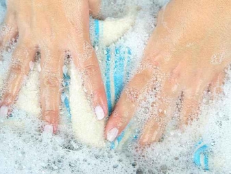 As for the temperature, its mark should not exceed 30 degrees. For cleaning fabric products suitable delicate mode. It is recommended to abandon the mechanical spin, as this may damage them.