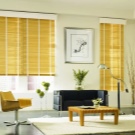 Horizontal blinds represent the cloth consisting of a set of thin plates (lamels). All these elements are connected by a thin thread that connects them into a single structure. It should be noted that the slats can rotate around its axis, which allows you to adjust the lighting more qualitatively. When raised, the horizontal web does not curl into a roll, but shrinks. All lamellae fit snugly together and then hide in a decorative box (cassette). The width of the plates can vary in the range from 16 to 50 mm depending on the material from which they are made.