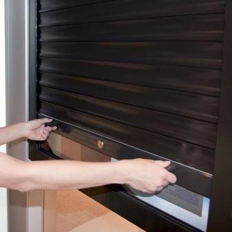A bright representative of this type are aluminum blinds, which are installed outside on the doors or windows. They not only protect the room from light, but also provide security.
