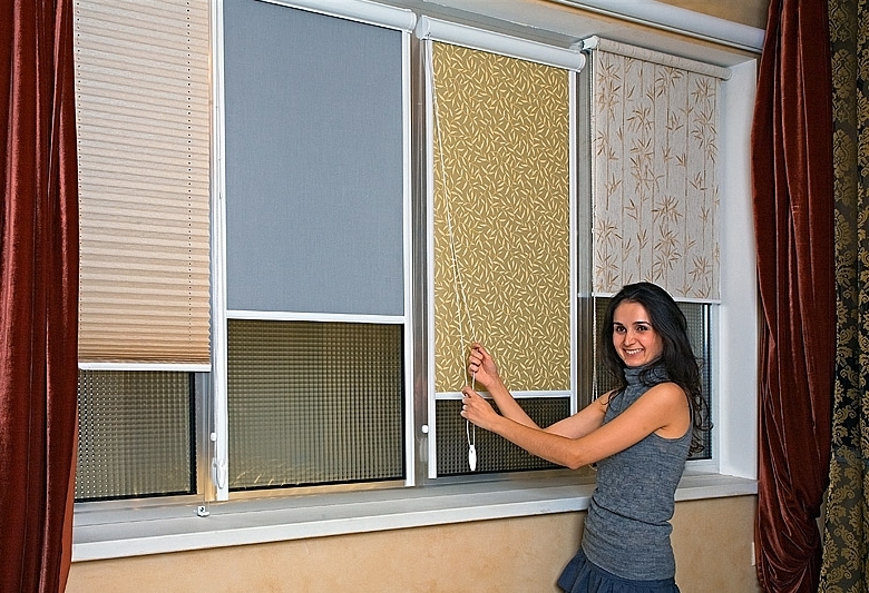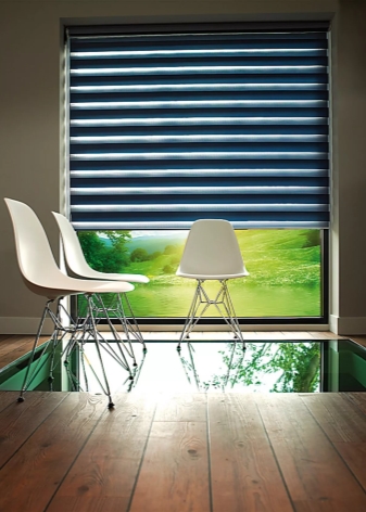 Today there are blinds consisting of several layers of fabrics. In addition, each of them is independent and has a different degree of transparency.This allows you to lift a certain layer, thus regulating the flow of light.